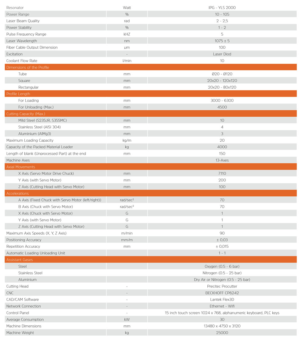 Energy saving, minimum noise, precise positioning, high quality and speed pipe-profile processing is possible thanks to the servo motor technology.