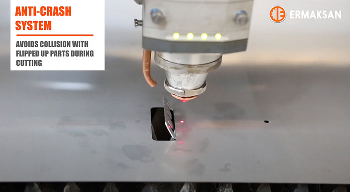 Lazer kafası, kesme işlemi boyunca, tipik olarak son derece hızlı bir şekilde malzeme üzerinde hareket eder. Zaman kazanmak için bir sonraki kesime giderken kafa genellikle malzeme yüzeyine yakın kalır.Kafa, çıkıntı yapan bir malzeme parçasıyla çarpıştığında bir çarpma meydana gelir. Kafa aşağıdayken hareket ediyorsa, önceden oyulmuş bir kontur deliğine düşmesi de olasıdır.Hemen hemen tüm durumlarda, zarar önemlidir. Lazer kafasına verilen hasar önemsiz bir şey değildir. En iyi ihtimalle üretim süresini kaybedersiniz, ancak bazı durumlarda kafayı değiştirmeniz gerekecektir. Elbette, bu pahalı ve zaman alıcı olabilir.Ermaksan'ın çarpma önleyici sistemi, kesim sırasında lazer kesim kafasının yukarı kaldırılan parçalarla çarpışmasını önlemenize yardımcı olur.https://youtu.be/kdKc7jaUZd8