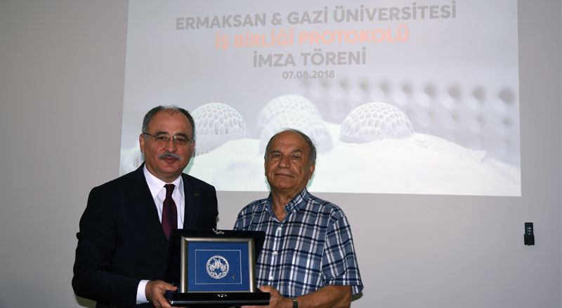 ‘Yenilikçi teknolojiler’ sloganıyla, fizik tabanlı bilime dayalı teknoloji üretimine odaklanan Ermaksan, Gazi Üniversitesi ile önemli bir iş birliği protokolüne imza attı. TÜBİTAK 1004 programı kapsamında yapılan protokolde; alanında yetkin personel yetiştirilmesi, cihazların teknik gelişimi ve AR-GE alanında ortak projeler geliştirilmesi gibi pek çok önemli detay yer aldı.Ayrıca, yapılan anlaşma ile Ermaksan ve Gazi Üniversitesi laboratuvarı altyapılarının, ‘ortak altyapı’ olarak kullanımı da taraflarca imzalandı. İş birliğinin protokol töreni de Ermaksan ev sahipliğinde yapıldı. ‘Yenilikçi teknolojiler’ sloganıyla, fizik tabanlı bilime dayalı teknoloji üretimine odaklanan Ermaksan, Türkiye ve dünya ölçeğindeki saygın üniversitelerle gerçekleştirdiği iş birliği çalışmalarına yeni bir halka daha ekledi. Türkiye’nin ilk yerli lazer çipini, ilk lineer motorlu lazer kesim makinesini, Türkiye’nin ilk %100 yerli lazer rezonatörünü (lazer ışın kaynağı), ilk kayışlı servo abkant presini ve ilk 3D metal eklemeli imalat tezgâhını üretme başarısı gösteren Ermaksan, büyük önem verdiği üniversite-sanayi iş birliği kapsamında Gazi Üniversitesi ile önemli bir protokole imza attı. Ermaksan ile Gazi Üniversitesi arasında yapılan iş birliği protokolü ile birlikte iki kurum, ülkemize katma değer sağlayacak yeni teknolojilerin birlikte üretilip geliştirilmesi konusunda, dirsek temasında bulunacak. Ermaksan ev sahipliğinde yapılan protokol törenine; Ermaksan Yönetim Kurulu Başkanı Erol Özkayan, Ermaksan Yönetim Kurulu Başkan Vekili ve Genel Müdürü Ahmet Özkayan, Gazi Üniversitesi Rektörü Prof. Dr. İbrahim Uslan, Rektör Yardımcısı Prof. Dr. Nizami Aktürk, Prof. Dr. Rahmi Ünal, Prof. Dr. Metin U. Salamcı veDoç. Dr. Yusuf Usta katıldı. Pek çok detayı kapsıyor TÜBİTAK 1004 programı kapsamında yapılan protokolde; alanında yetkin personel yetiştirilmesi, cihazların teknik gelişimi ve AR-GE alanında ortak projeler geliştirilmesi gibi pek çok önemli detay yer aldı. Ayrıca, yapılan anlaşma ile Ermaksan ve Gazi Üniversitesi laboratuvarı altyapılarının, ‘ortak altyapı’ olarak kullanımı da taraflarca imzalandı. Rektör Uslan AR-GE Merkezini gezdi Protokol törenin ardından, Ermaksan Yönetim Kurulu Başkan Vekili ve Genel Müdürü Ahmet Özkayan, Rektör Uslan ve beraberindeki heyete, tamamen yerli mühendislerin görev yaptığı ve ileri teknolojinin geliştirildiği Optoelektronik AR-GE Merkezi’ni gezdirerek, yapılan çalışmalarla ilgili kendilerine bilgiler verdi. Güçlü olmak için teknoloji geliştirmeye mecburuz Rektör Uslan ve beraberindeki heyeti Ermaksan bünyesinde ağırlamaktan ve Gazi Üniversitesi ile yapılan iş birliğinden duyduğu memnuniyeti ifade eden Ermaksan Yönetim Kurulu Başkan Vekili ve Genel Müdürü Ahmet Özkayan, şirket olarak yeni teknolojiler geliştirmeye devam edeceklerini belirterek, bu konuda üniversite-sanayi iş birliğinin de çok önemli olduğunu söyledi. Teknolojiye yatırım yapmayan ülkelerin geride kaldığını kaydeden Özkayan, “Güçlü olmak için teknolojiye yatırım yapmaya mecburuz” dedi. Ermaksan ülkemize büyük değer katıyor Ermaksan’ın yapmış olduğu çalışmaları yakından takip ettiğini belirterek, tamamen yerli ve milli bir anlayışa yapılan bu çalışmaların ülkemizin kalkınma hedefleri açısından da son derece önemli olduğunun altını çizen Gazi Üniversitesi Rektörü Prof. Dr. İbrahim Uslan da sektörde pek çok ilke imza atan Ermaksan’ın yaptığı çalışmaların gurur verici olduğunu söyledi. Yapılan iş birliğinin hayırlı olmasını dileyen Uslan, hep birlikte omuz omuza vererek Türkiye’yi daha güçlü bir şekilde geleceğe taşımak istediklerini de sözlerine ekledi.