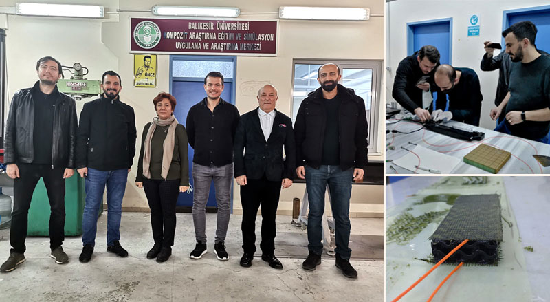 Üniversite-sanayi iş birliği kapsamında BAKOMER (Balıkesir Üniversitesi Kompozit Araştırma Eğitim ve Simülasyon Uygulama ve Araştırma Merkezi) ile yaptığımız çalışmalar çerçevesinde, kompozitin mekanik testleri üzerine 3 eksenli fiber optik sensör uygulaması yapıldı.