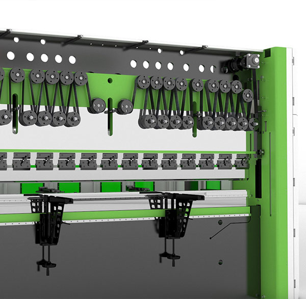 5 eksen (X, R, Z1, Z2,X5) servo motorlu arka dayama istenilen geometriye göre 0,05 mm pozisyonlama hassasiyetine sahip arka dayama hassas bükümler elde etmenizi sağlar.