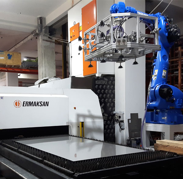 RoboMaster, ERMAKSAN Fibermak lazer kesim makinesiyle entegre robot teknolojisi sayesinde otomatik sac yükleme, boşaltma ve istifleme işlemlerini gerçekleştirir. Bu hepsi bir arada çözüm, makine performansını en üst düzeye çıkarır, insan müdahalesini azaltır ve 24/7 Endüstri 4.0 uyumlu üretim sağlar.