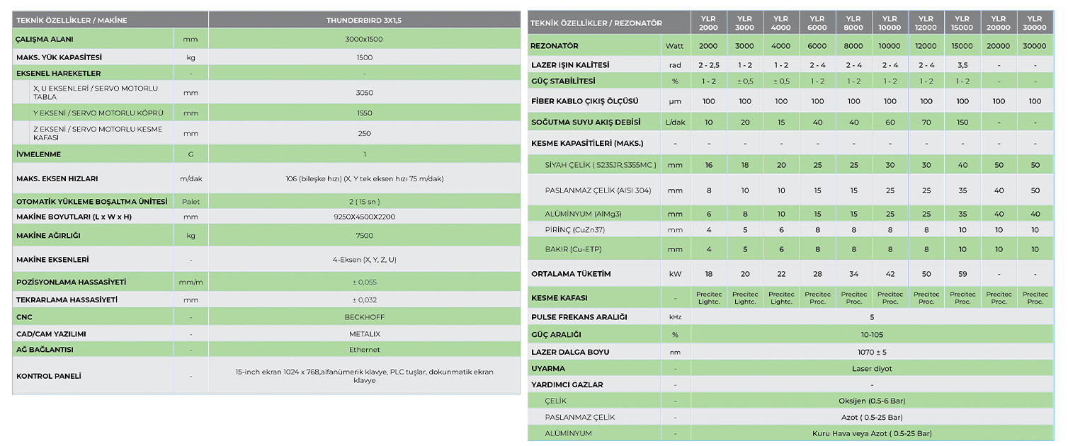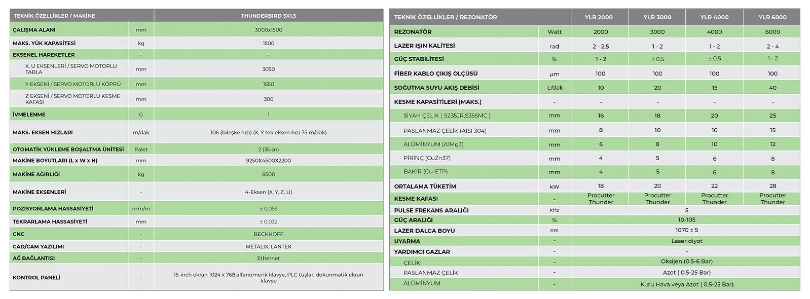 Yüksek kaliteli bileşenler kullanılarak üretilen Thunderbird Laser'ler güçlü gövdesi ve rijit yapısıyla uzun yıllar boyunca ağır şartlar altında çalışmak için uygundur.