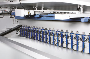Geniş ve ince sacların sarkmasını önleyen pnömatik X tipi kollar alttan yere paralel şekilde çalışarak, kesilen sacı kesim süresince destekler. Böylece daha hassas kesimler elde edilir.